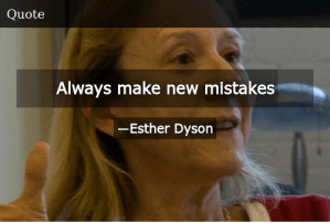 Industry pundit Esther Dyson long ago voiced some sage and pithy advice in just four words: “Always make new mistakes.” (Esther graciously allowed me to use her quote as the title for my blog.  Many thanks, Esther!)